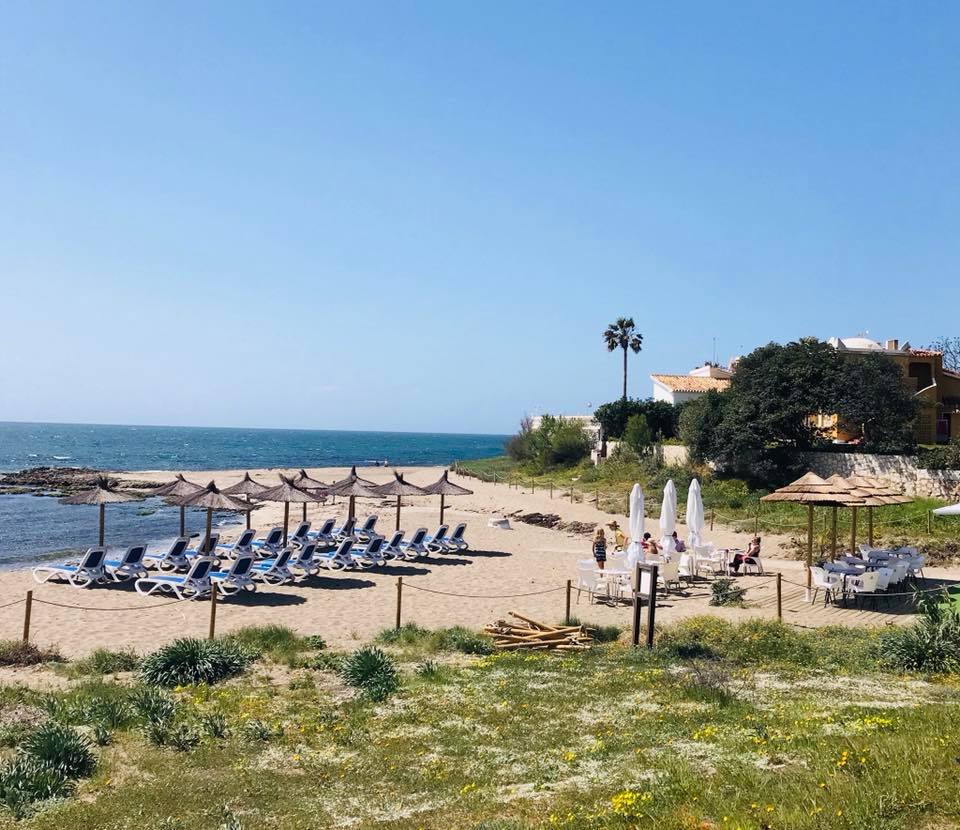 The beach is only a 2 minutes’ walk away. On the beach you can find a nice chiringuito where you can hire sun chair loungers for sunbathing and enjoy delicious snacks, meals and drinks. During the season they often have live music. Although there is a busy road between the villa and the beach you can walk under the road to access the beach so there is no need to cross the road.